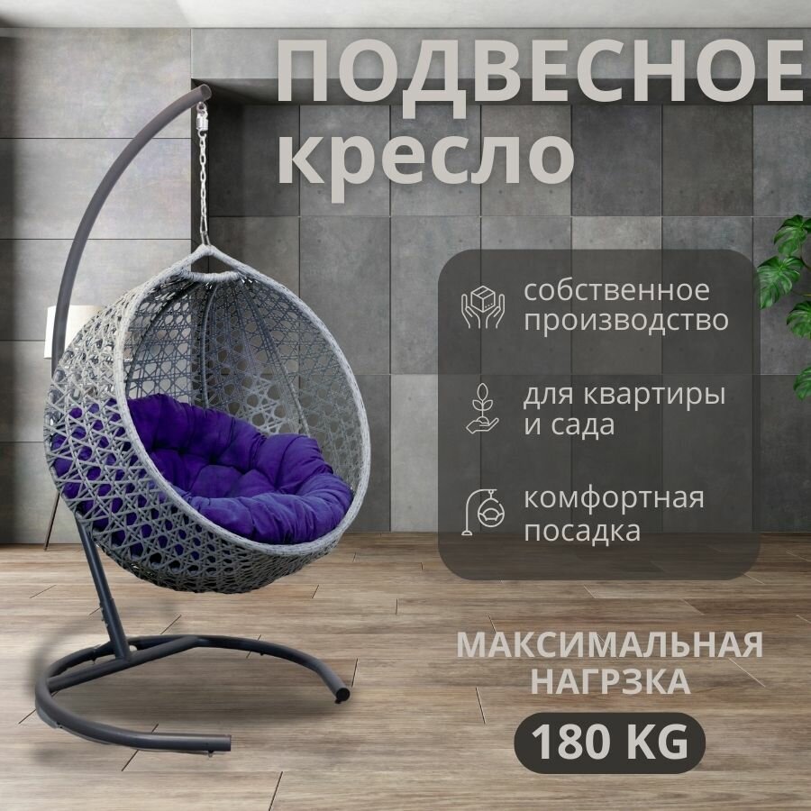 10 цен на Подвесное кресло кокон,110*78*100см,румбик, серебристый,сиреневая подушка
