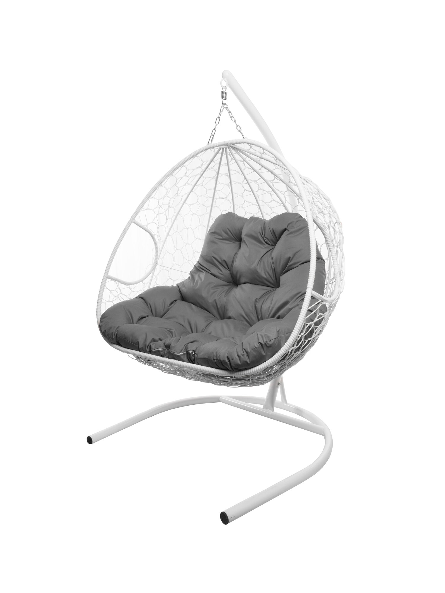 Подвесное кресло из ротанга "Для двоих" белое с серой подушкой M-GROUP