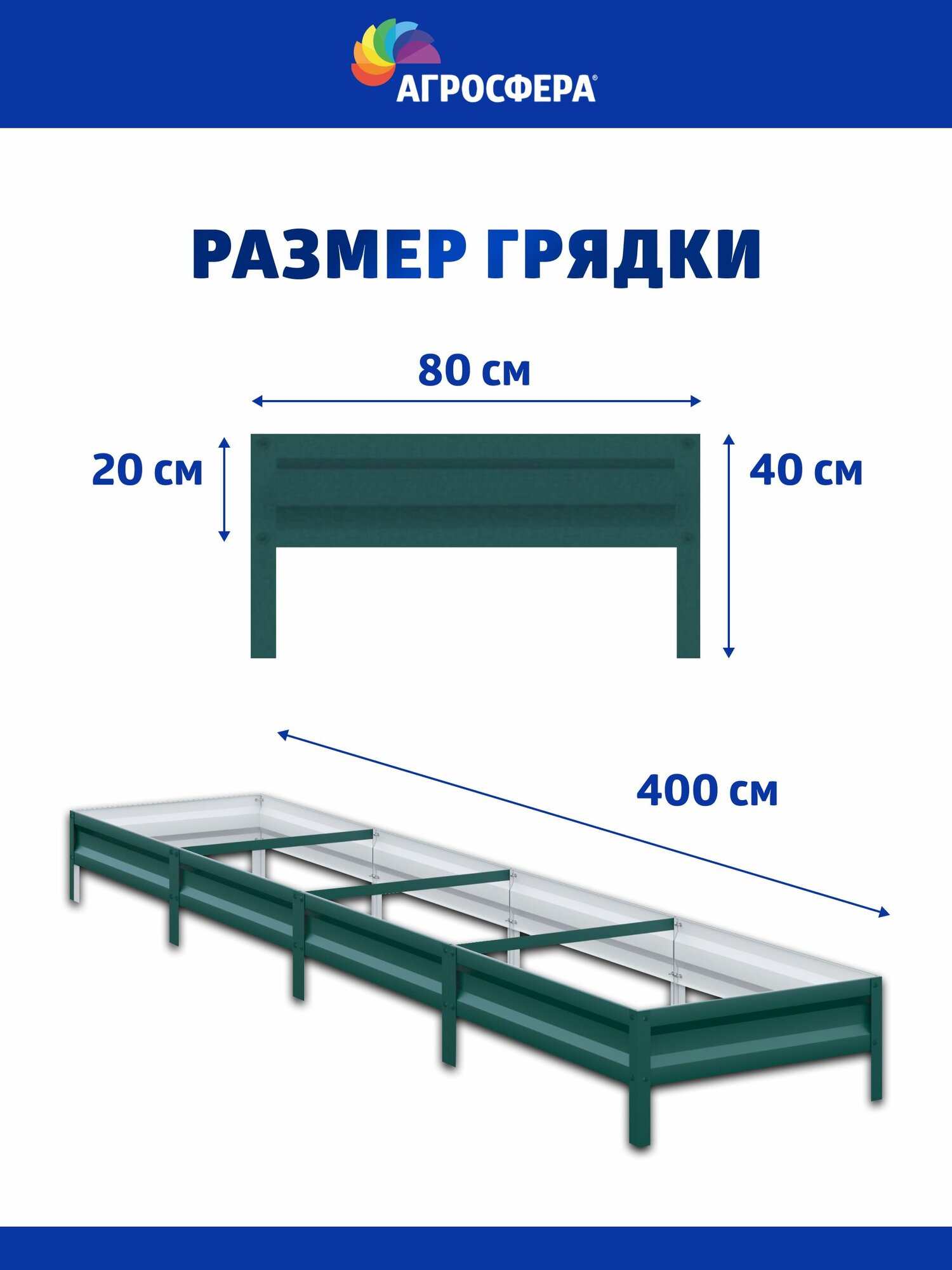 Грядка оцинкованная с полимерным покрытием 0,8 х 4 м, высота 20 см, цвет: зелёный информация: