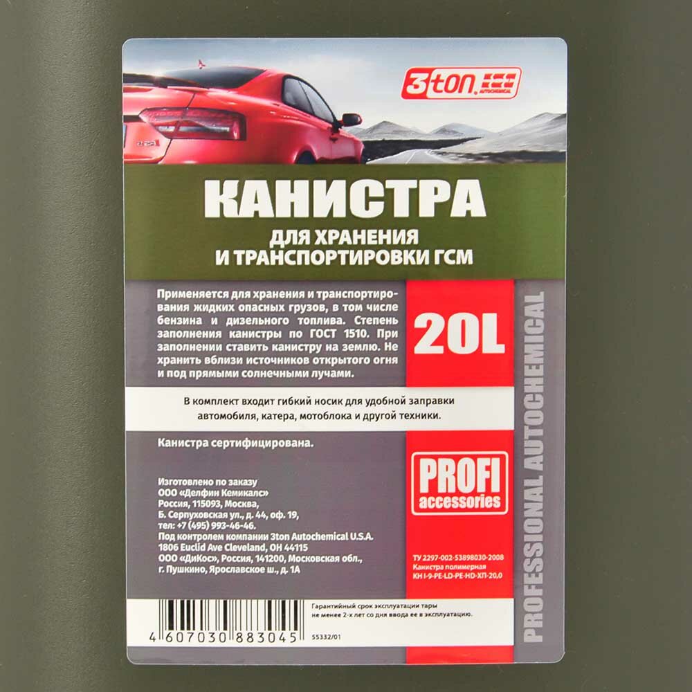 Канистра PROFI 20л оливковая для топлива в комплекте с крышкой и лейкой 3ton 55332 798 ₽