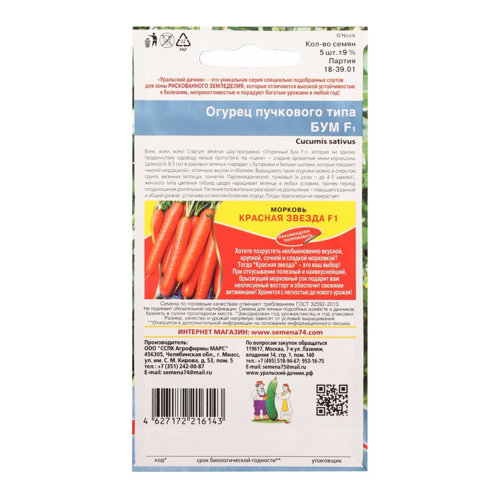 Семена огурца "Бум", F1, 5 шт. 7584893 информация: