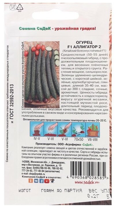 Семена Огурец Аллигатор 2 F1 0,2 г (СеДеК)