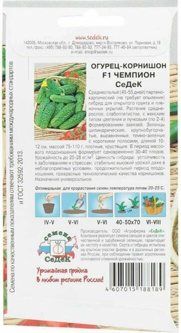 Отзывы на Семена Огурец Чемпион F1 корнишон 0,2г Партенокарпический (Седек)