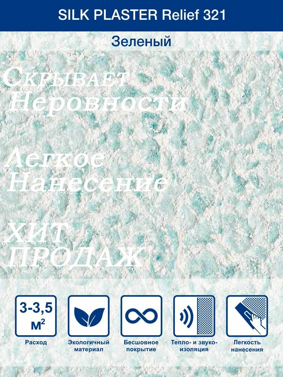 Жидкие обои Silk Plaster Рельеф 321, комплект 6 шт (до 18 кв.м) зеленый 7 837 ₽