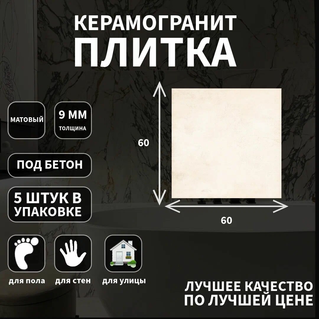 10 цен на Керамогранитная плитка Grasaro G-1101, коллекция: Beton, матовый, бежевый, 60x60 см;