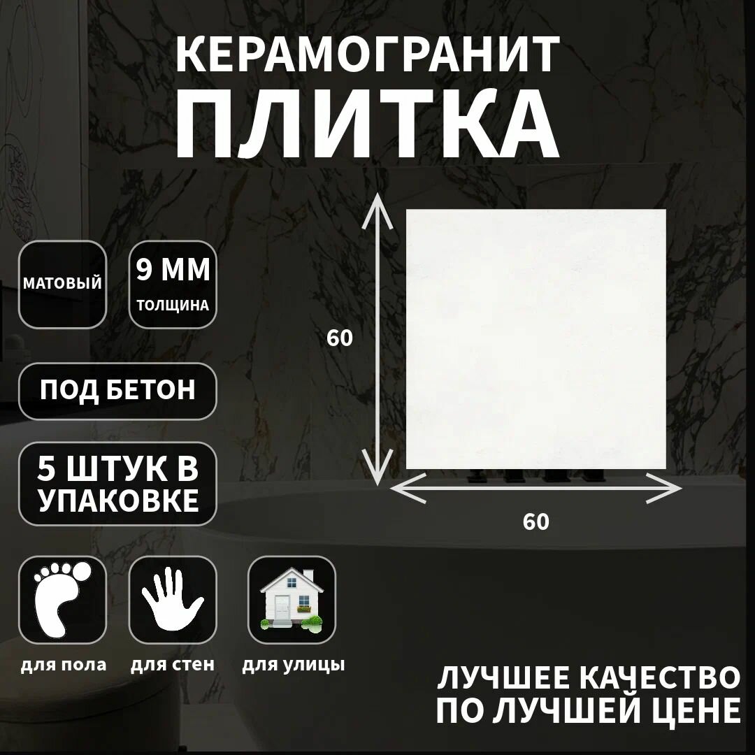 10 цен на Керамогранитная плитка Grasaro G-1104, коллекция: Beton, под бетон, белый, 60x60 см;