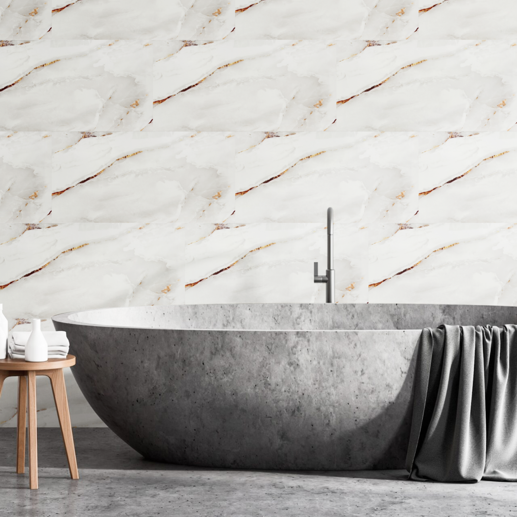 Белый мрамор, 60х30 см плитка глянцевая, самоклеющиеся панели для стен, декор для дома на кухню, в ванную (арт. 112) 6 шт. 1 202 ₽