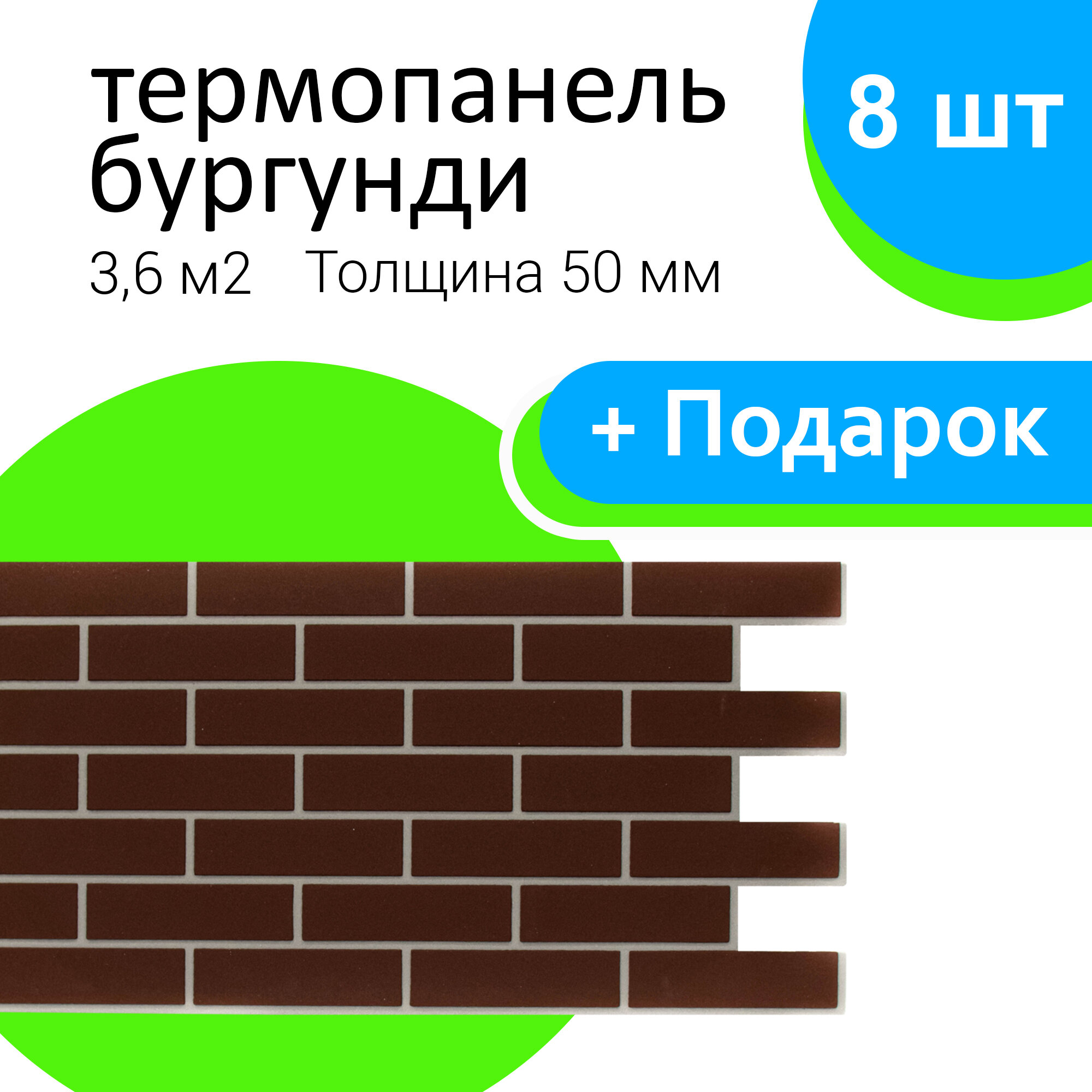 Фасадная термопанель ООО "СТЗ", цвет Бургунди, 50х1035х490мм, 8 шт информация: