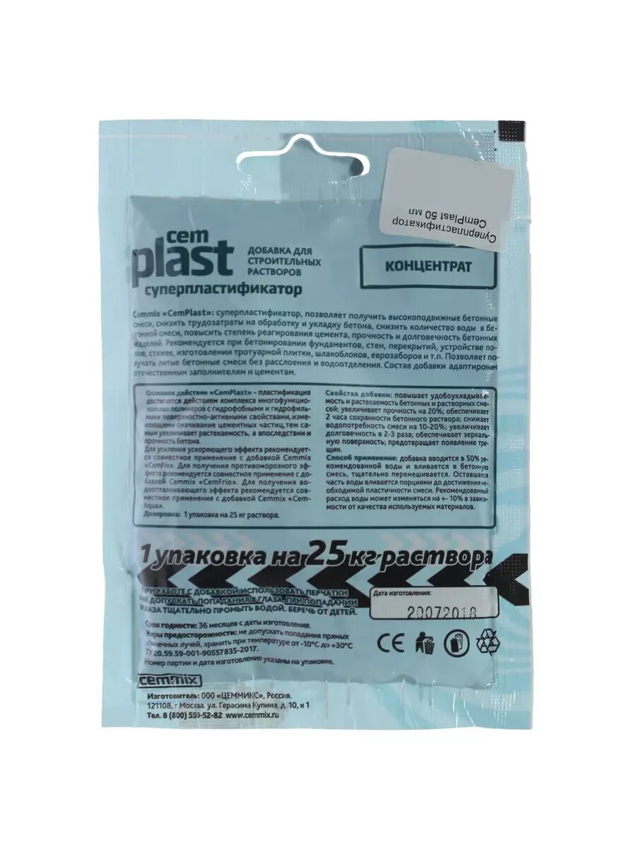 Суперпластификатор CemPlast, концентрат, саше информация: