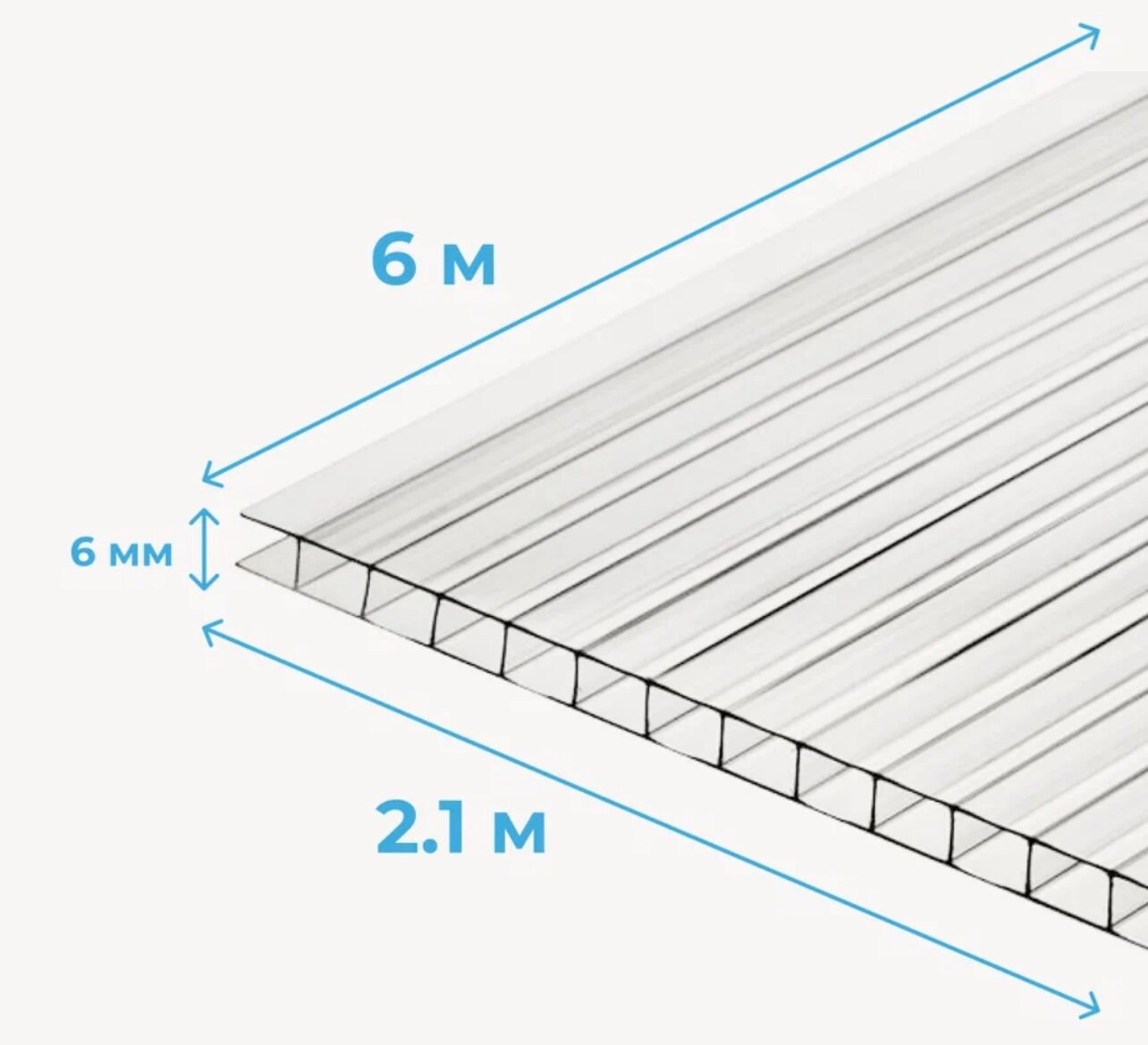 6 мм прозрачный сотовый поликарбонат Skyglass гарантия 15 лет, длина 6 метров информация: