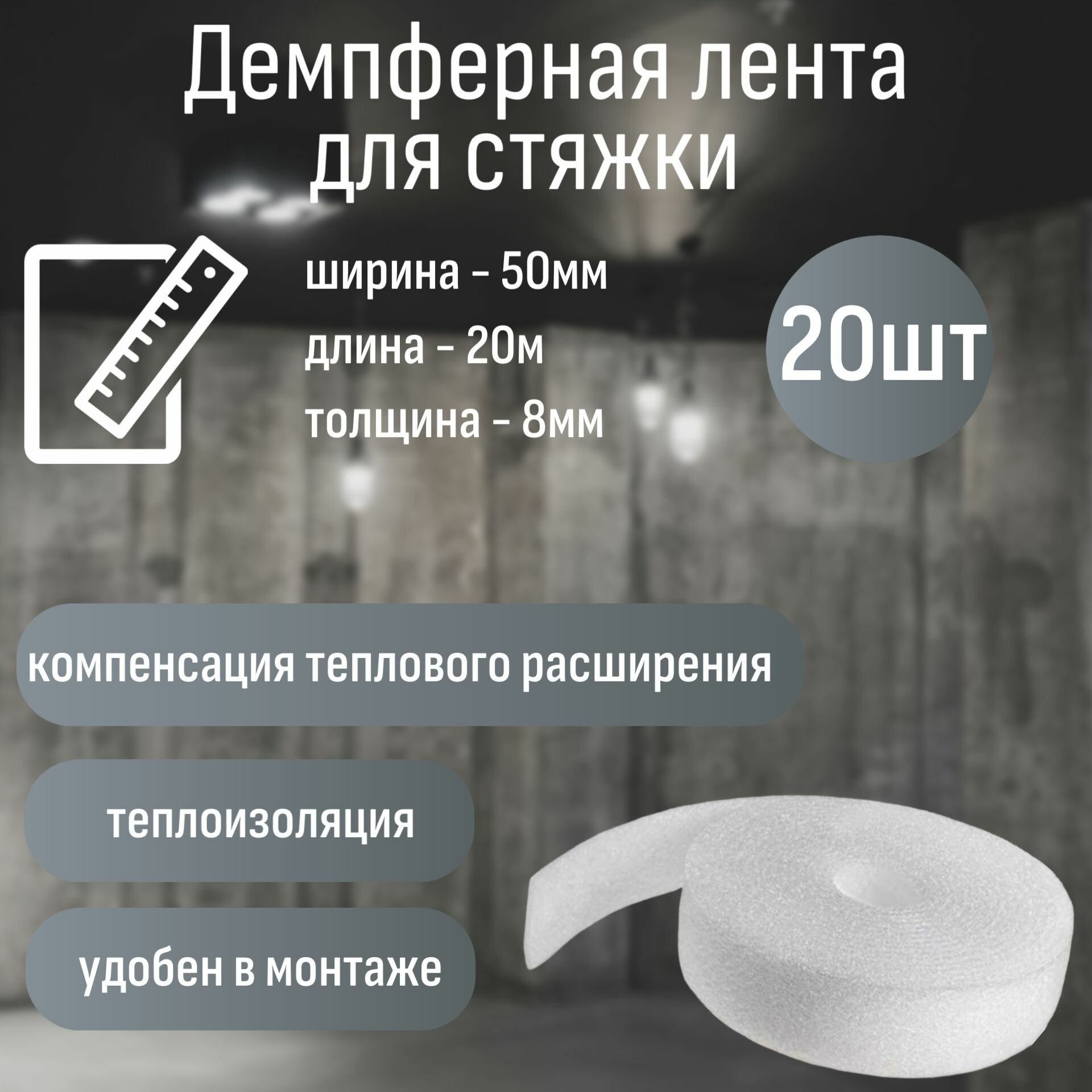Лента демпферная 8мм х 50мм х 20м 20 шт белая информация: