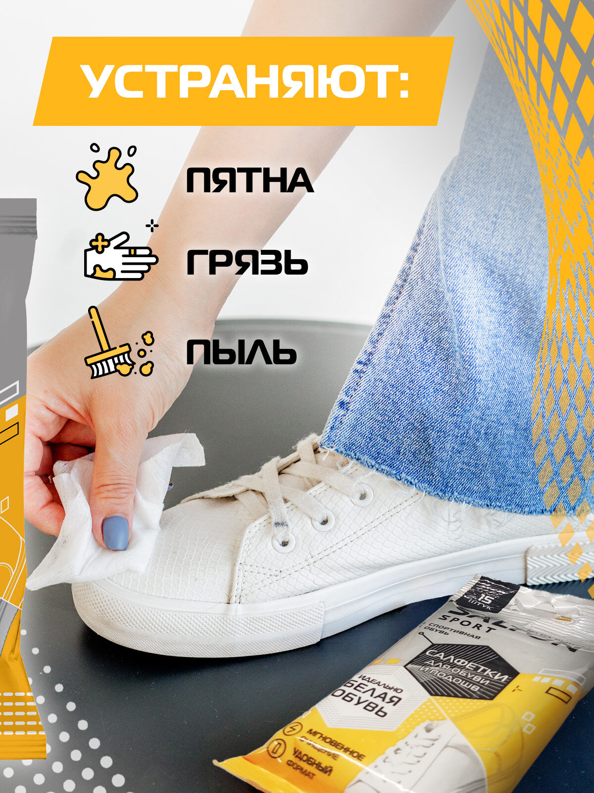 Влажные салфетки для очищения белой обуви и подошв, салфетки для обуви, Salton Sport 15 шт 249 ₽