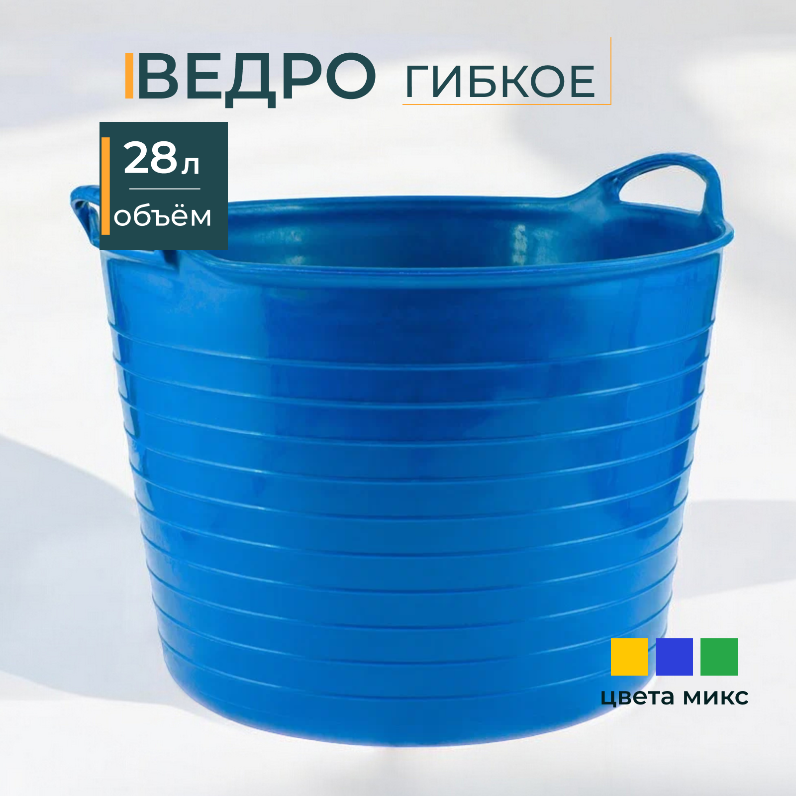 Ведро пластиковое гибкое сверхпрочное, 28 л, микс цветов, универсальное, для бани, для сада, для продуктов информация:
