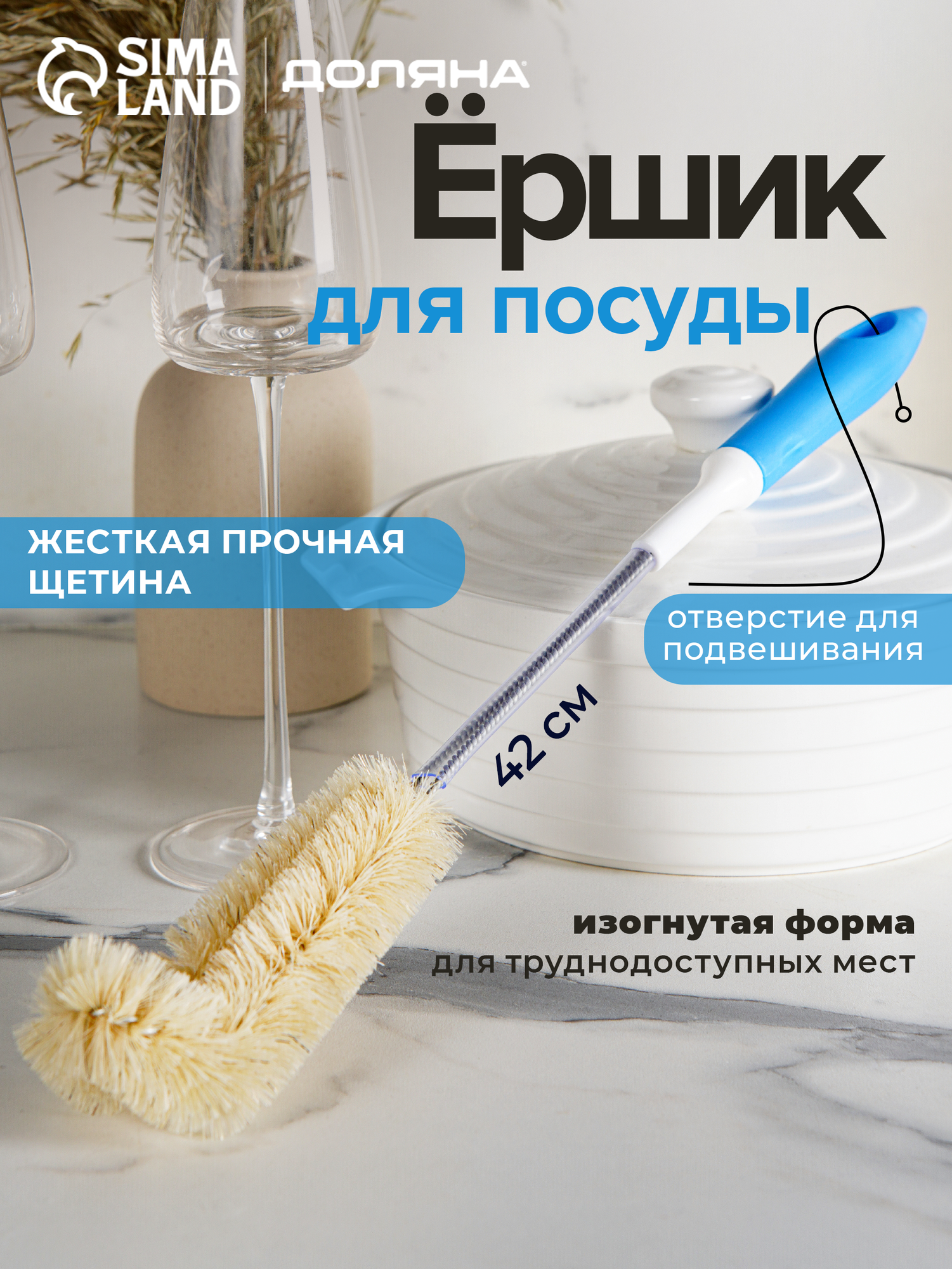 Отзывы на Ёршик кухонный для посуды и бутылок Доляна, 40×6 см, цвет микс