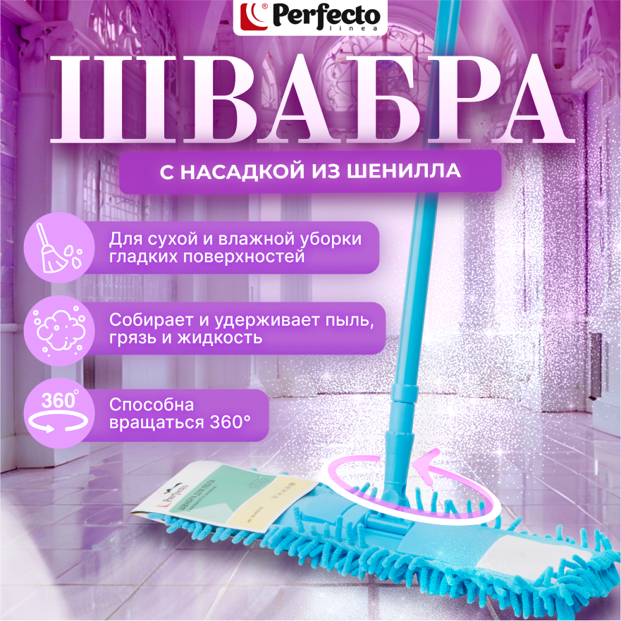 10 цен на Швабра для пола PERFECTO LINEA Solid с насадкой из шенилла голубая (43-492032)