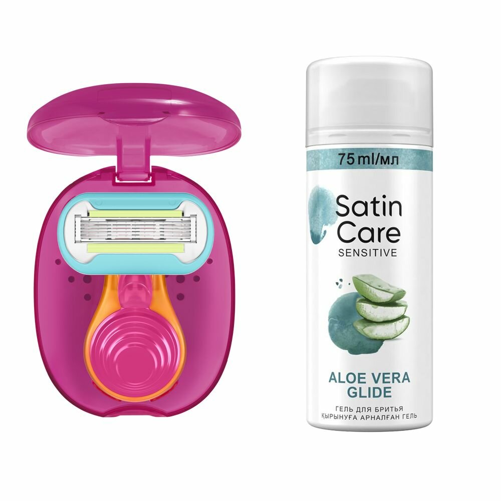 Женская бритва Gillette Venus Snap+Гель для бритья Satin Care для женщин для чувствительной кожи Aloe Vera, 75 мл информация: