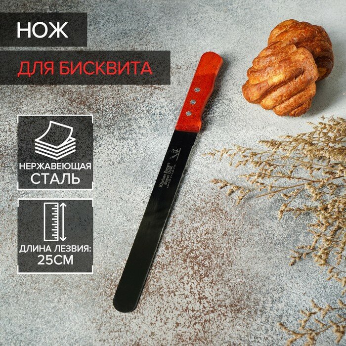 10 цен на Нож для бисквита КНР ровный край, ручка дерево, рабочая поверхность 25 см 10
