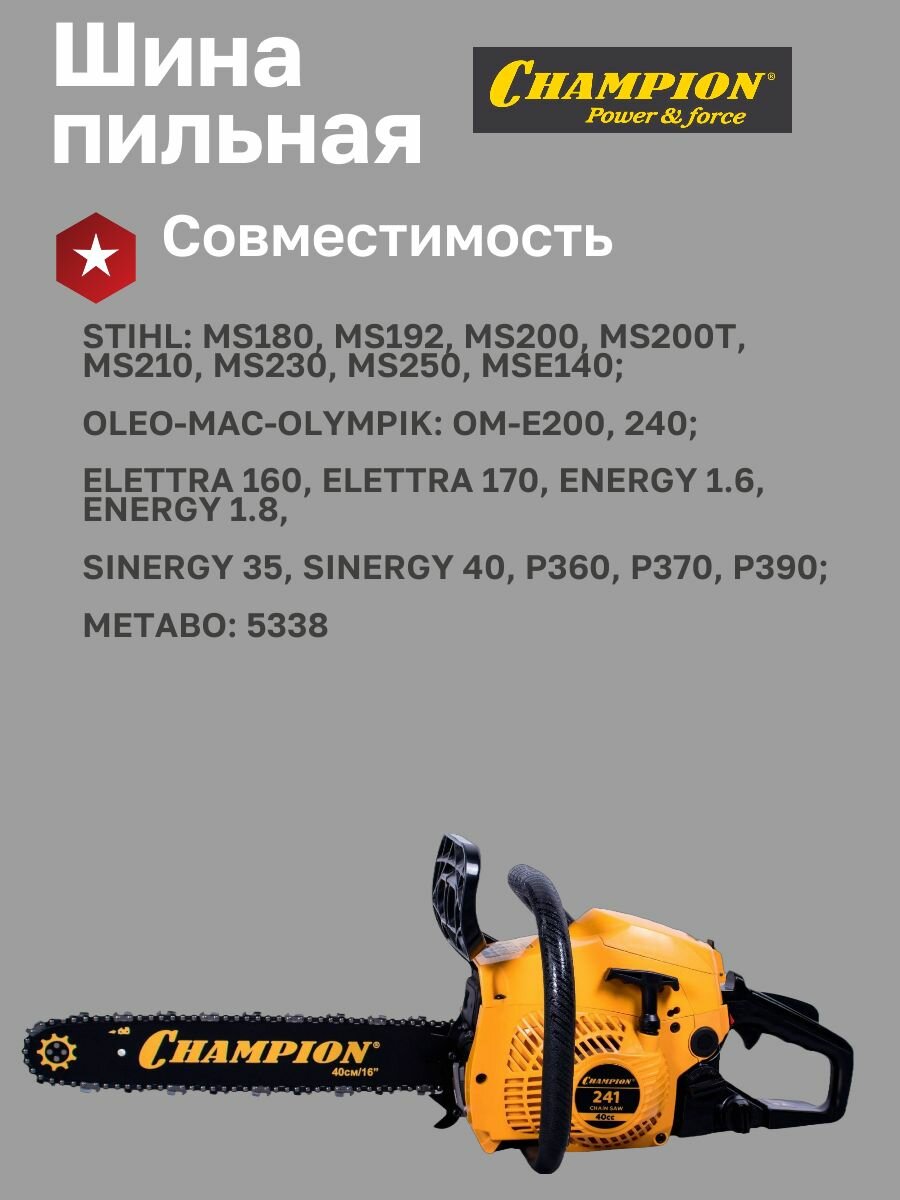 Шина (16"; 56 звеньев; 1.3 мм; 3/8 ") для бензопил Champion арт.952903