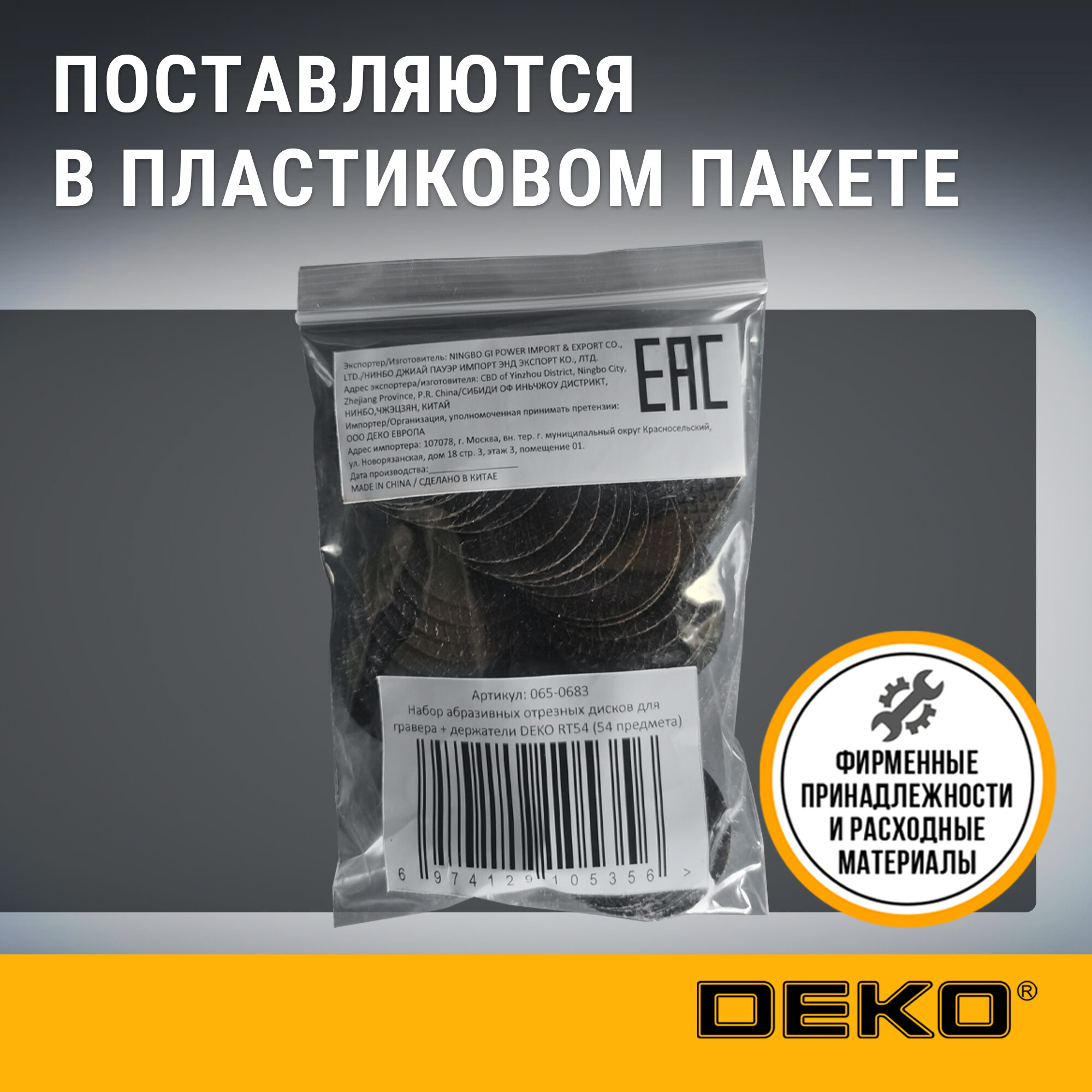 Набор абразивных отрезных дисков для гравера + держатели DEKO RT54 (54 предмета) информация: