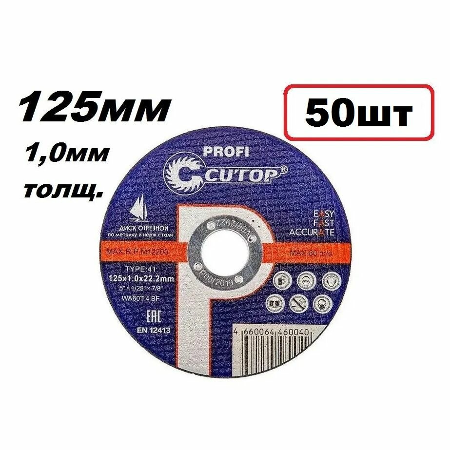 Круг отрезной 125х1,0х22мм для металла Cutop Profi 39983т 50шт информация: