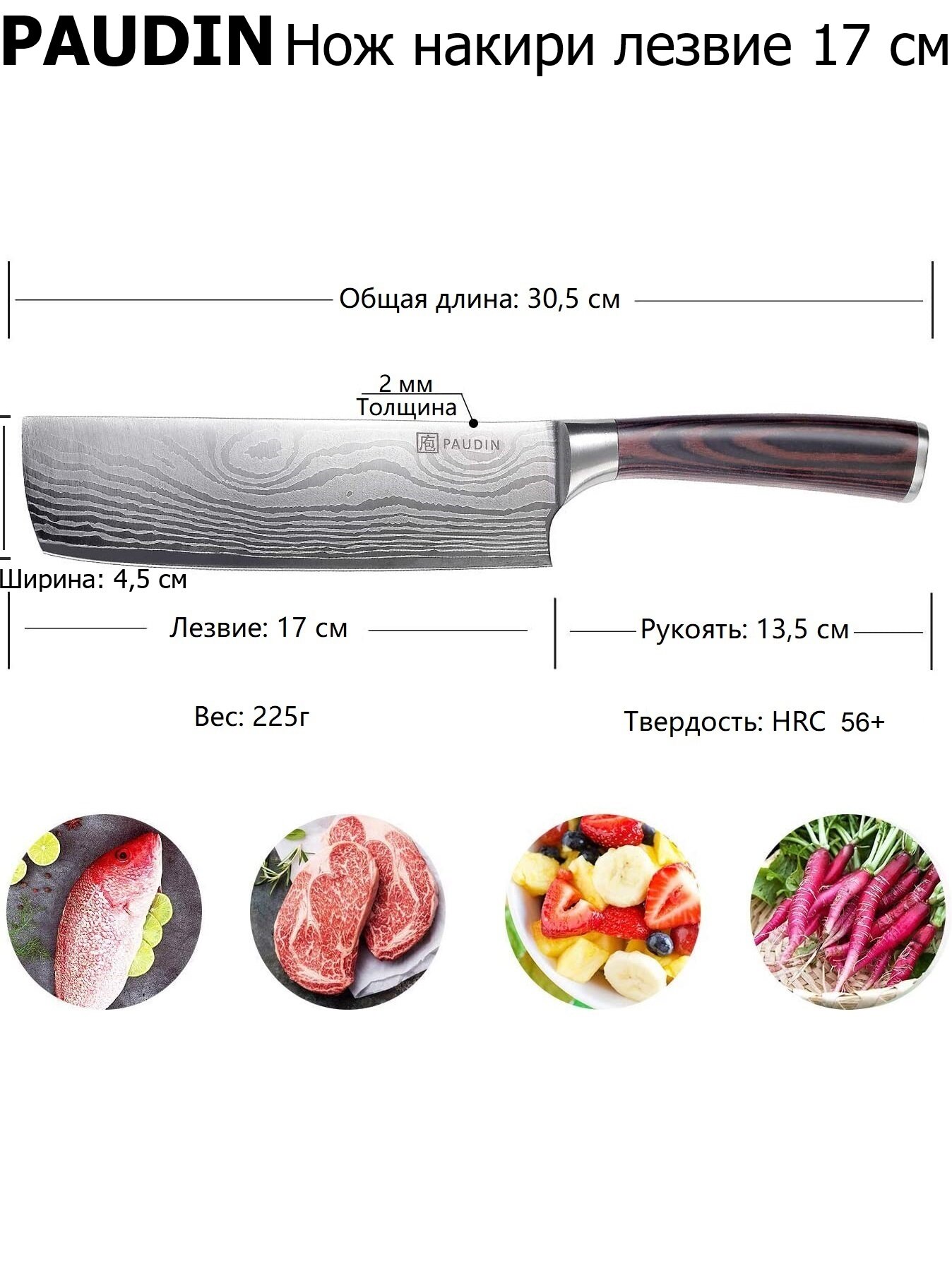 PAUDIN Pro Нож кухонный накири тесак топорик лезвие 17 см 3 558 ₽