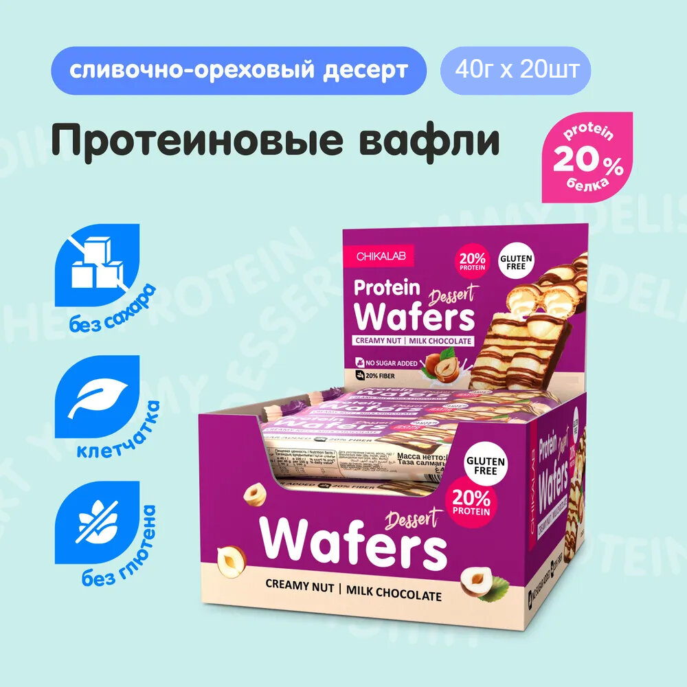 Протеиновые вафли CHIKALAB Protein Wafers, Сливочно-ореховый десерт, 20 шт по 40 г информация: