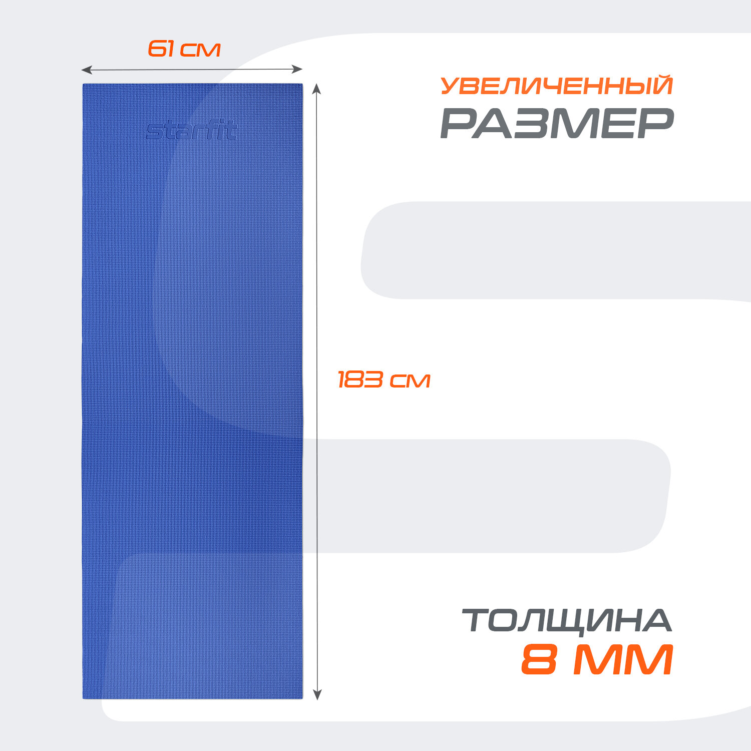 Коврик для йоги и фитнеса STARFIT FM-101 PVC, 0,8 см, 183x61 см, темно-синий информация: