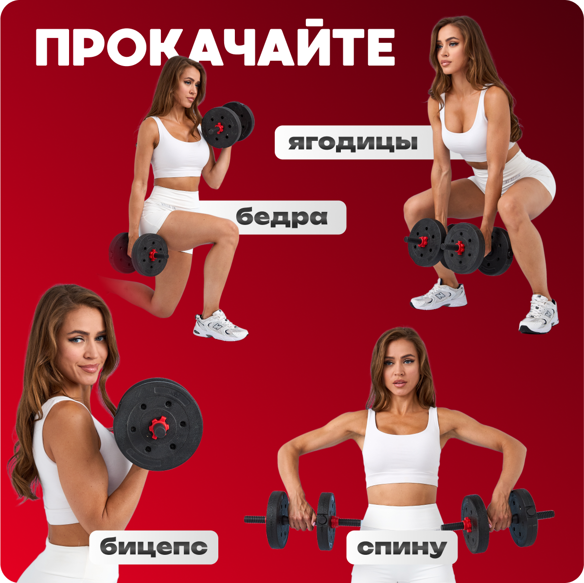 Отзывы на Гантели разборные Атлант 10 кг 2 шт + штанга, общий вес набора 20 кг