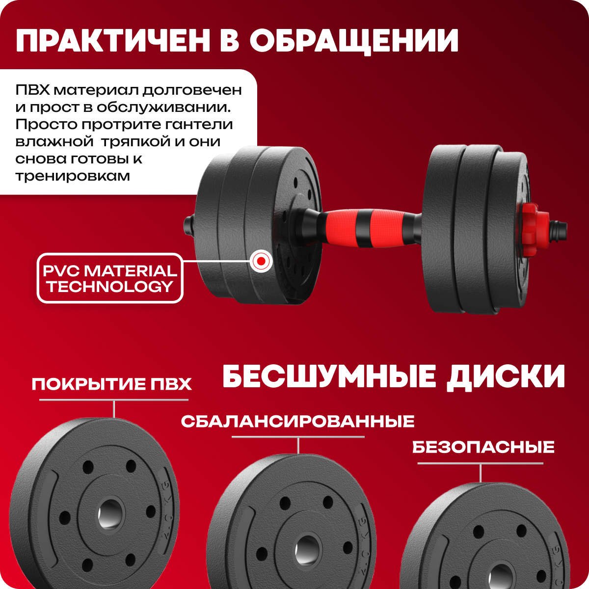 Гантели разборные Атлант 10 кг 2 шт + штанга, общий вес набора 20 кг информация: