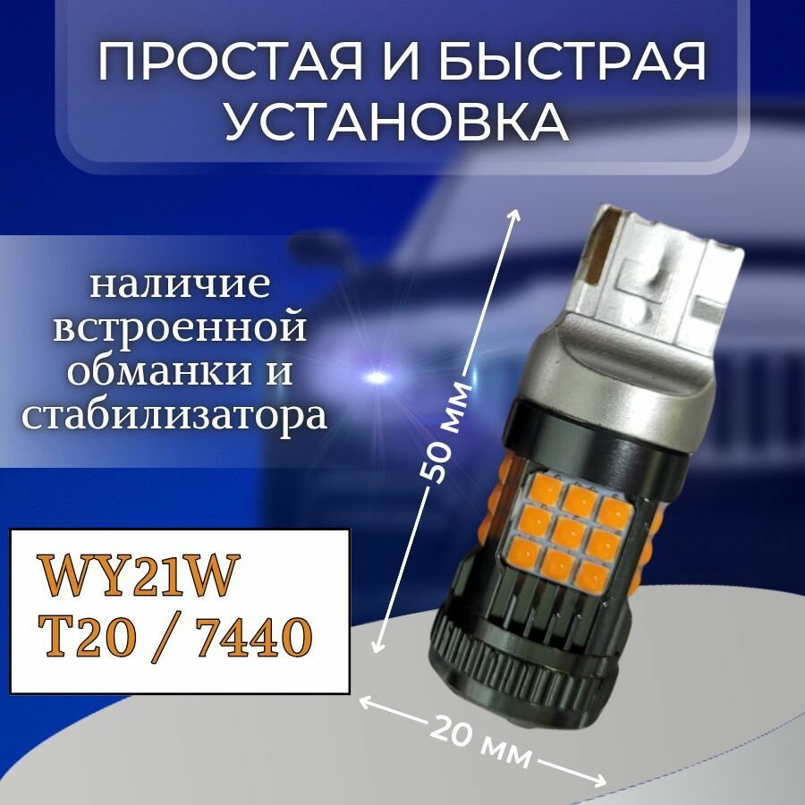 Отзывы на Светодиодная автомобильная лампа 2шт. WY21W / T20 / 7440 SMD 3030 30W c обманкой V2 (Желтая)
