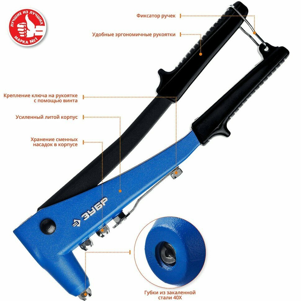 ЗУБР Заклепочник усиленный, ЗУБР "П-700" 31192, 2.4-4.8 мм - алюминий и сталь, 2.4-4.0 - нерж сталь, литой корпус, Профессионал ( 31192_z01 ) информация:
