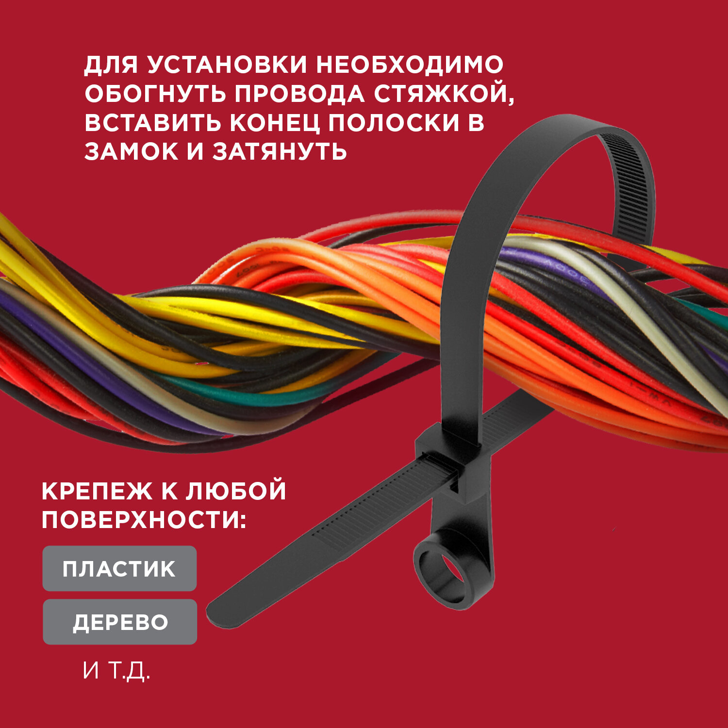 Нейлоновая кабельная стяжка REXANT 100 x 3,6 мм, хомут под винт, 100 шт. 213 ₽