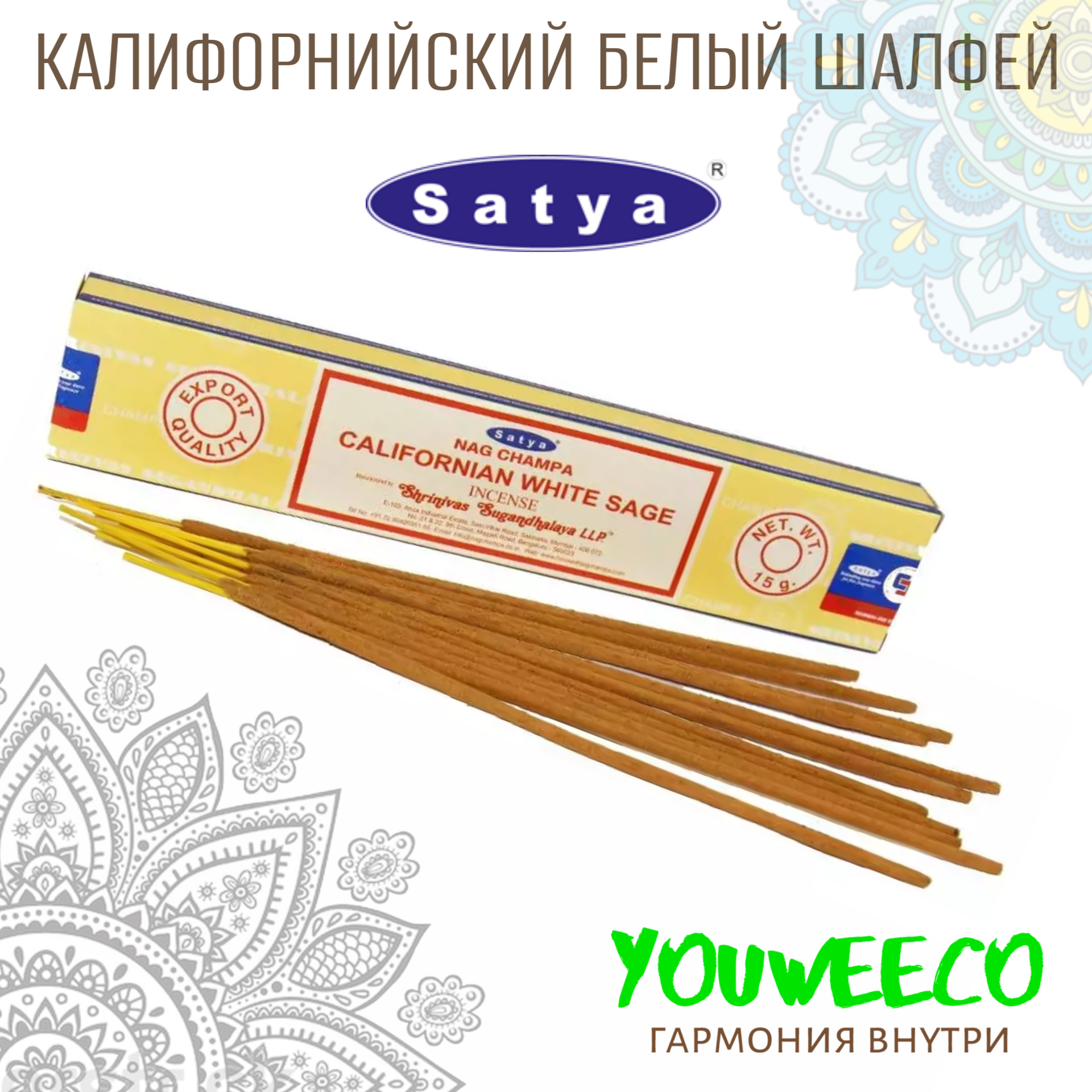 Ароматические палочки / Благовония "Сатья Калифорнийский белый шалфей / Satya Californian White Sage" информация: