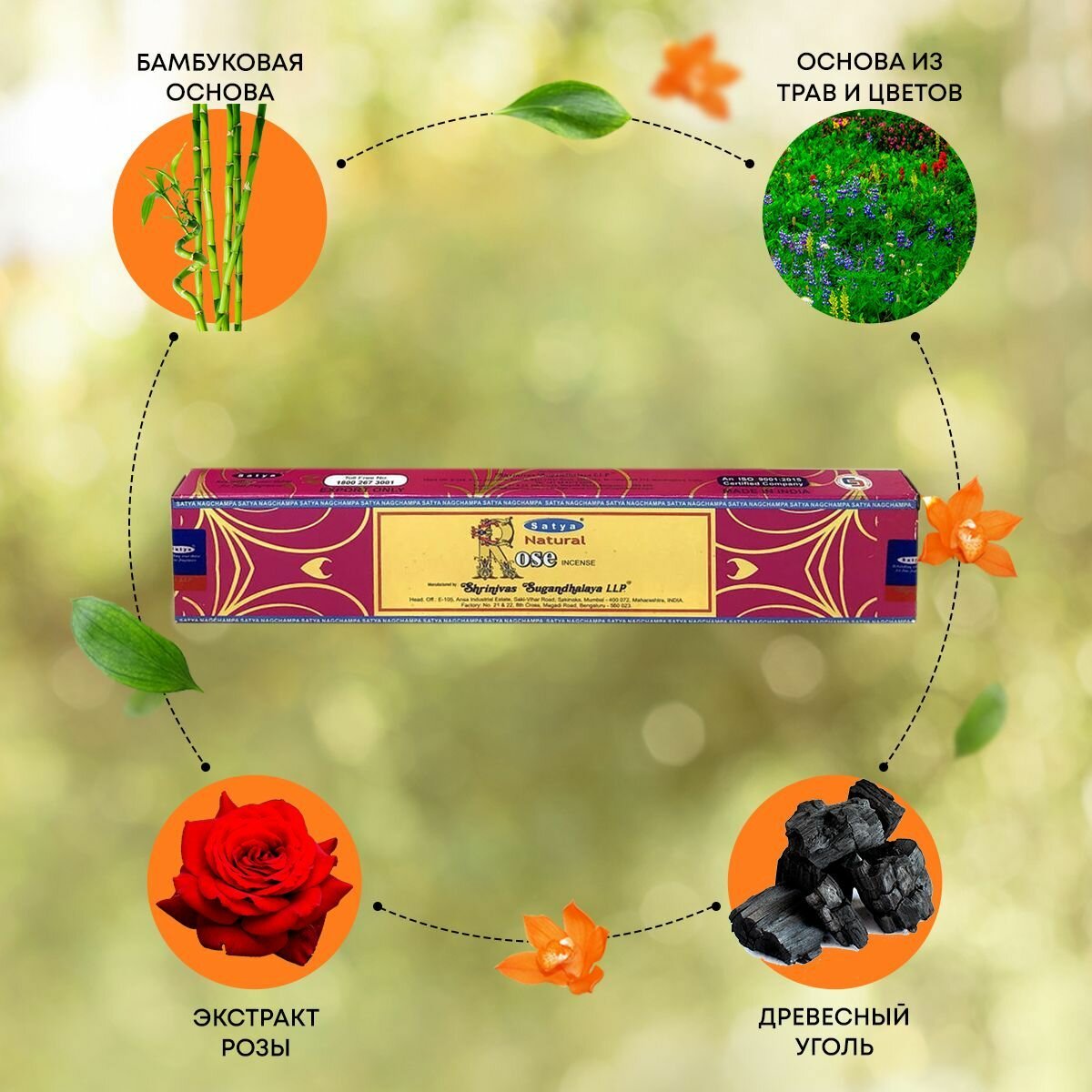 Благовоние Натуральная роза (Natural rose incense sticks) Satya | Сатья 15г информация:
