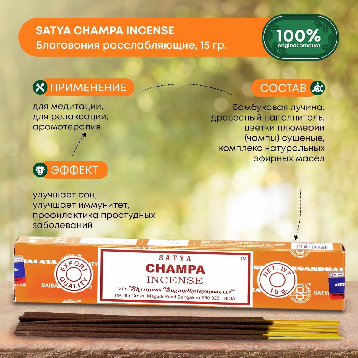 Ароматические палочки - благовония SATYA Champa Чампа 15г информация: