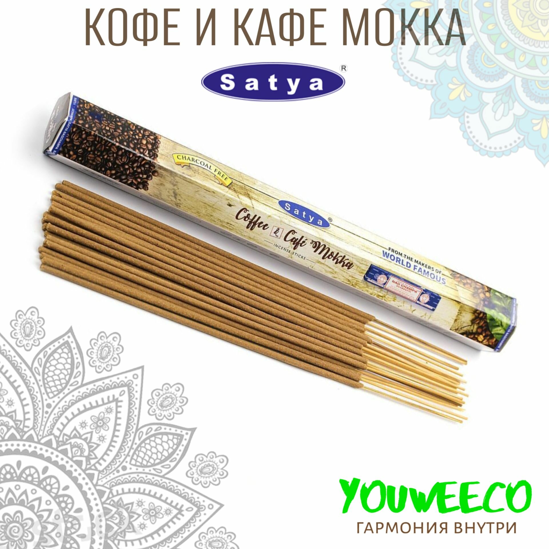 10 цен на Благовония Coffee and Cafe Mocha (Кофе и Кафе Мокка) Ароматические индийские палочки для дома, йоги и медитации, Satya Hexa Premium (Сатья Гекса Премиум), 30г