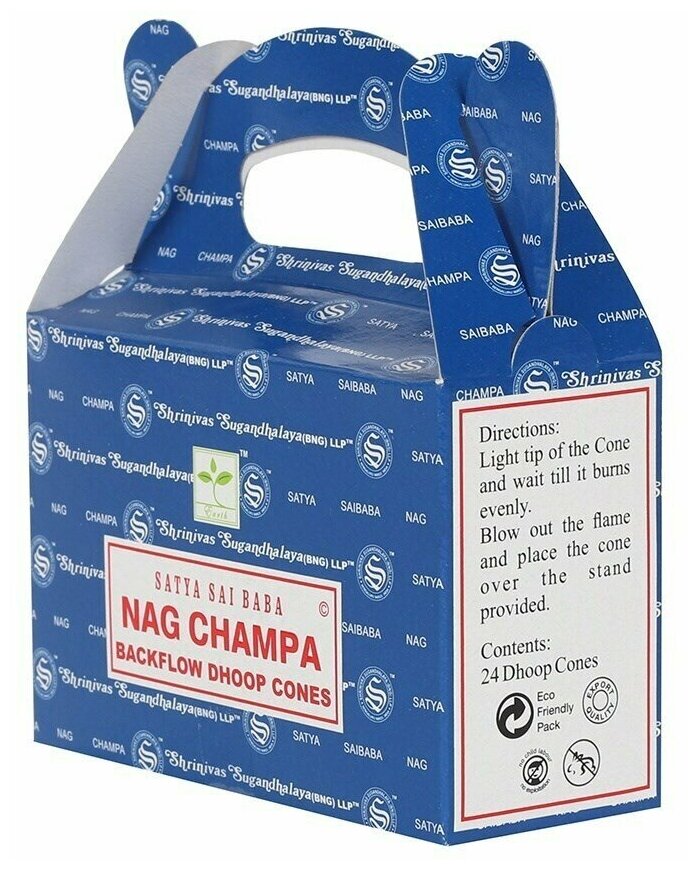 Индийские благовония стелющийся дым Сатья Наг Чампа (Satya Nag Champa) натуральные ароматические благовония в форме пули для дома, йоги, медитации, релакса и ароматерапии 24 шт информация:
