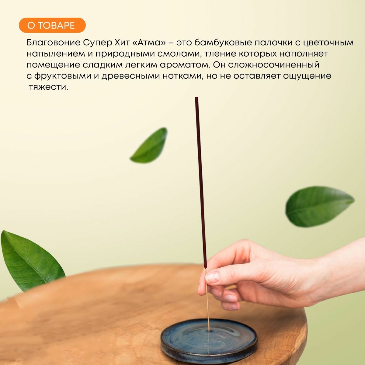 10 цен на Благовония Super Hit Athma Incense (Супер Хит Атма) Ароматические индийские палочки для дома, йоги и медитации, Satya (Сатья), 15г