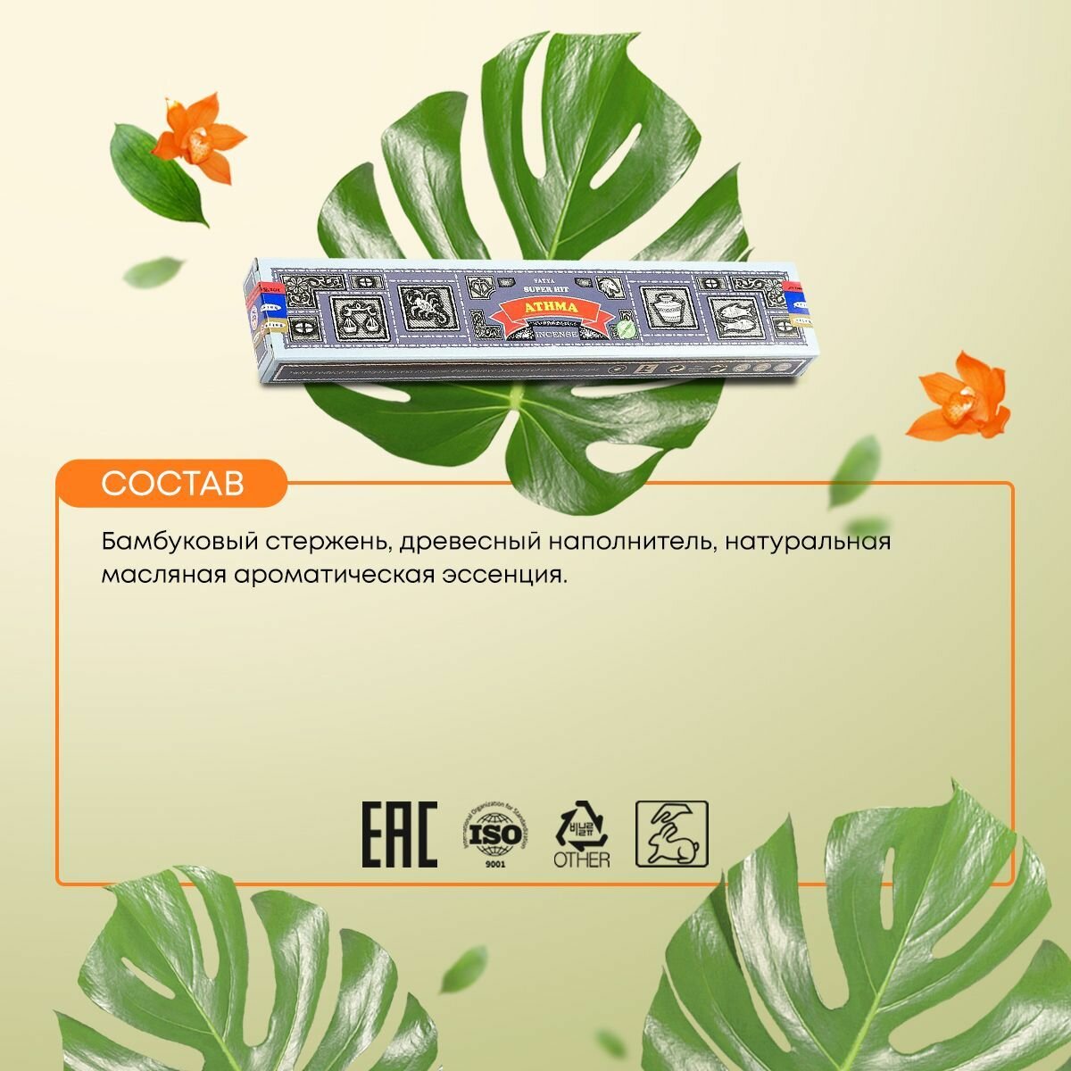 Благовония Super Hit Athma Incense (Супер Хит Атма) Ароматические индийские палочки для дома, йоги и медитации, Satya (Сатья), 15г информация:
