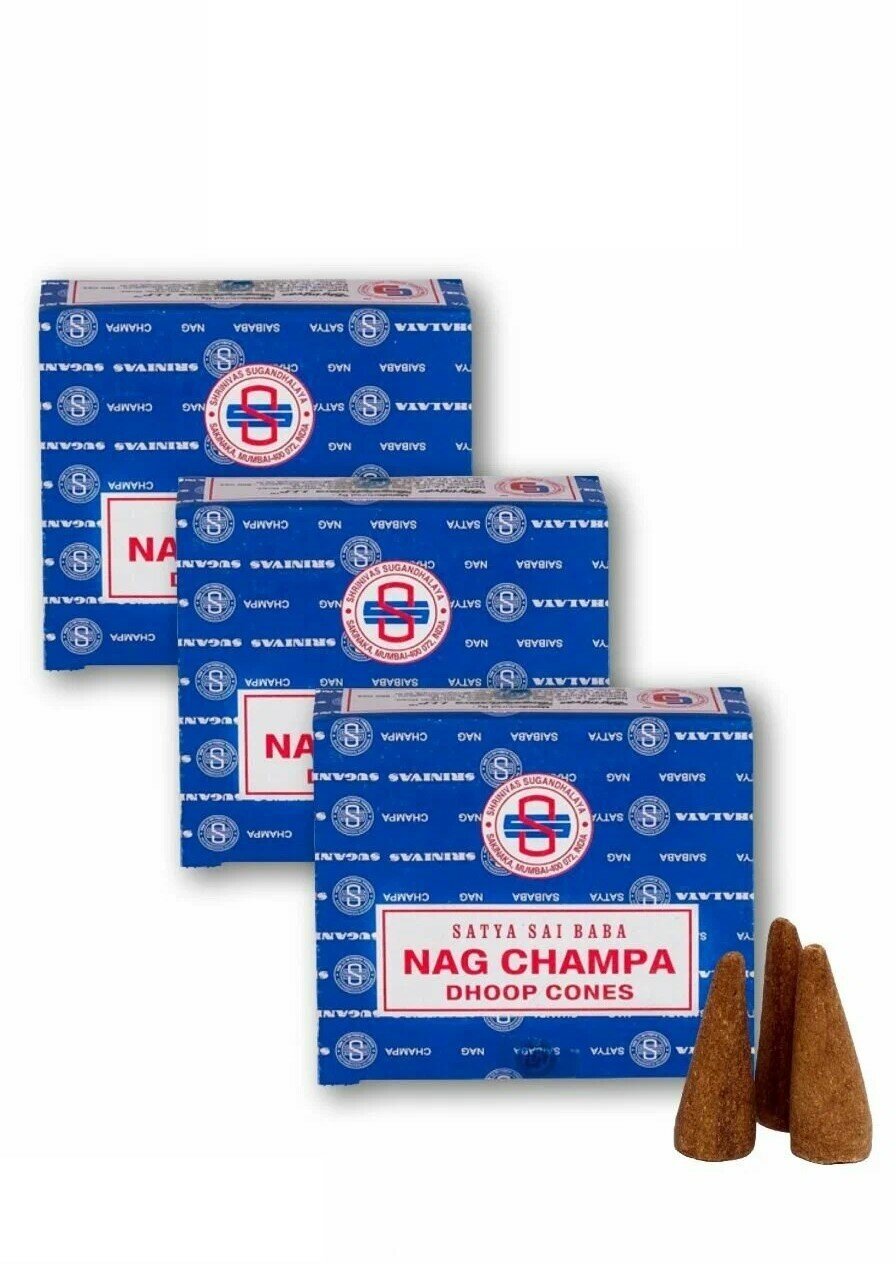 10 цен на Набор Satya Наг Чампа Мумбай - 3 упаковки по 12 шт - ароматические благовония, конусовидные, конусы с подставкой, Nag Champa - Сатия, Сатья