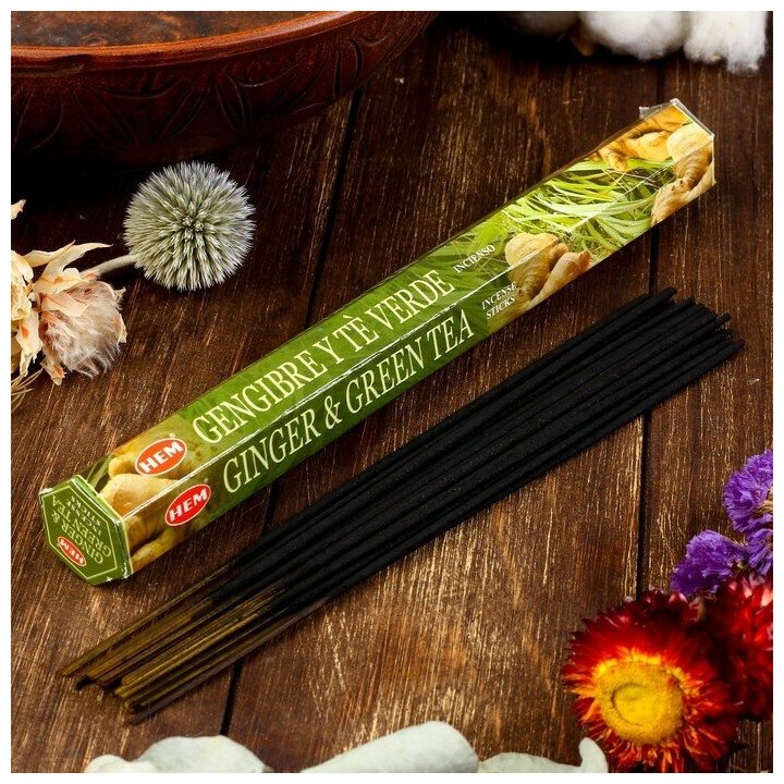 10 цен на Благовония HEM Ginger & Green Tea (Имбирь и зеленый чай), 20 палочек