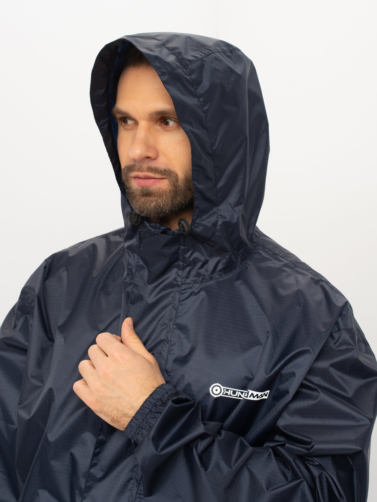 Костюм-дождевик мужской Huntsman ВВЗ Склон-2 летний ветровлагозащитный туристический, для рыбалки и охоты темно-синий, таффета рипстоп (р.44-46/170)