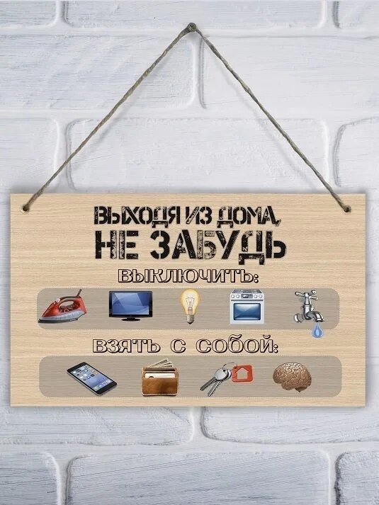 10 цен на Декоративная табличка "Выходя из дома, не забудь! Светлый дуб" / 15х25см