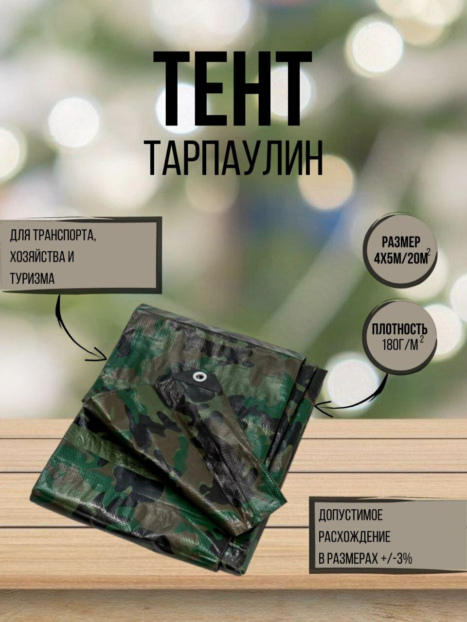 Тент укрывной камуфляж 180 г/м2 4х5м Тарпаулин с люверсами информация: