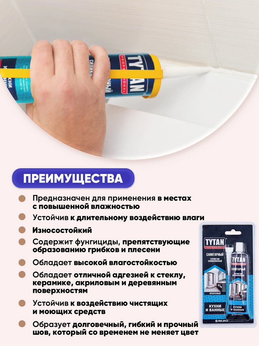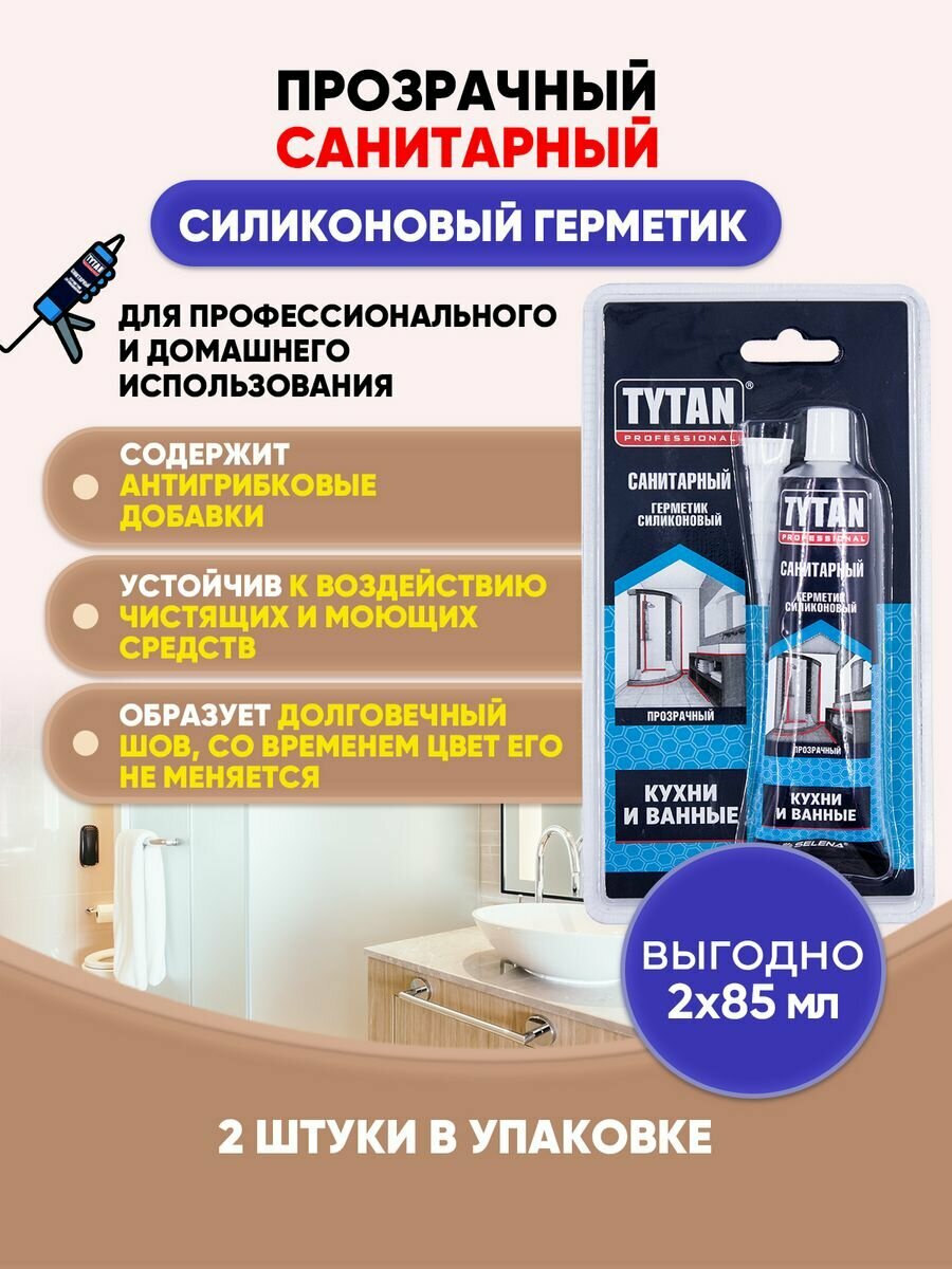 10 цен на TYTAN PROFESSIONAL Герметик Санитарный бесцветный 85мл/2шт