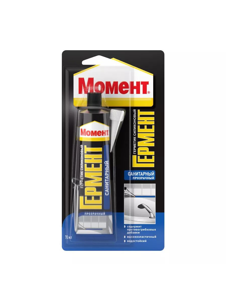 Момент гермент Силиконовый санитарный герметик прозрачный 70 мл на блистере 3002431 информация: