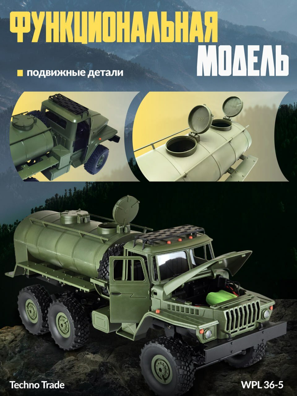 10 цен на Радиоуправляемая машина WPL Советский военный грузовик *Урал* с цистерной RTR масштаб 1:16 4WD 2.4G - WPLB-36-5