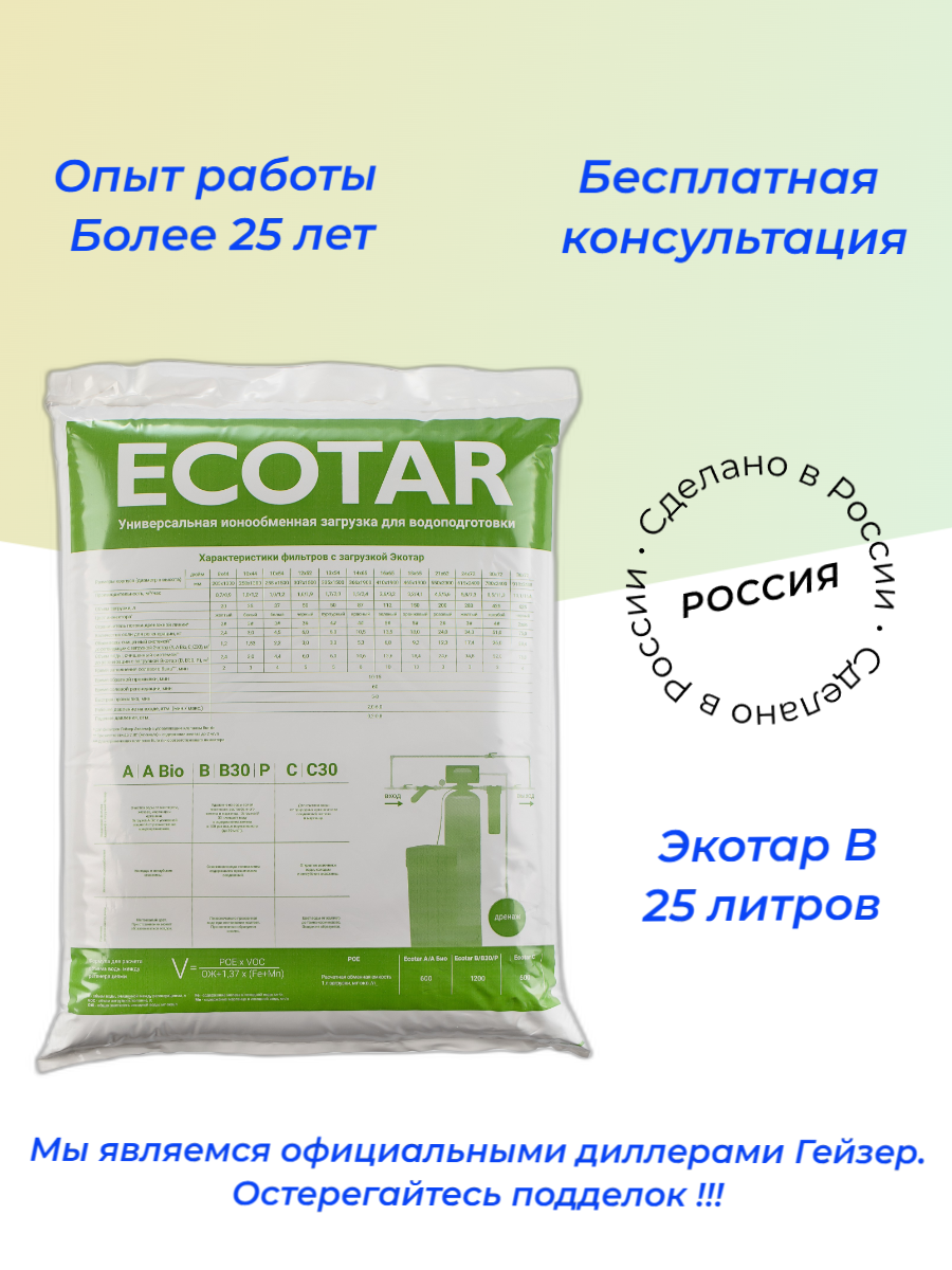 Экотар В (мешок 25 л) ионообменная смола загрузка фильтра для воды от железа и жесткости информация: