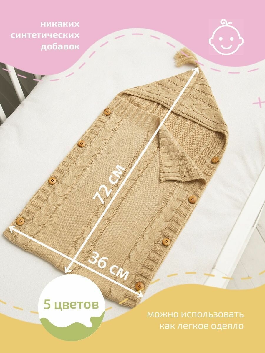 Конверт вязаный для новорожденного, 72х36, песочный 1 496 ₽
