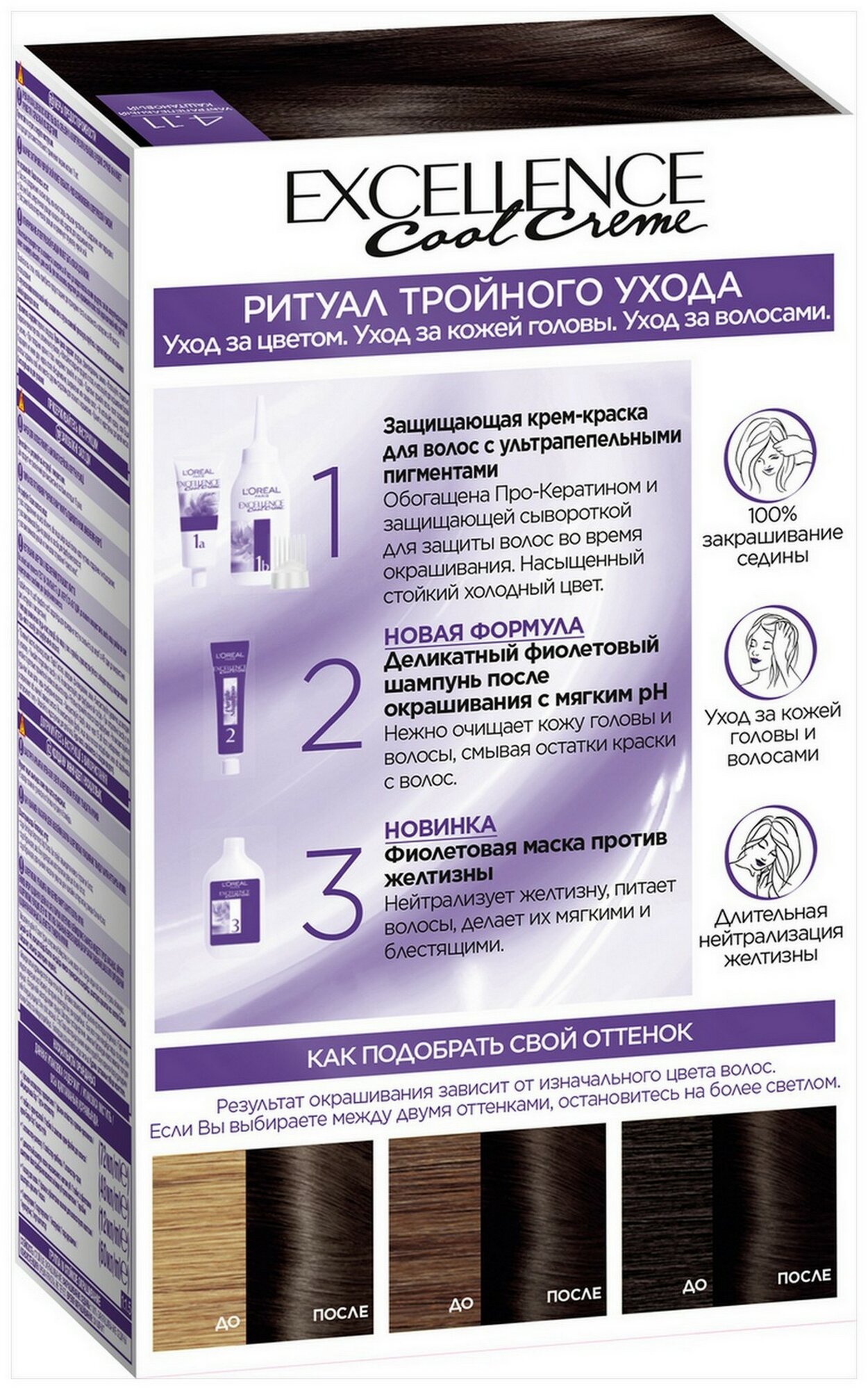 L'Oreal Paris Excellence стойкая крем-краска для волос, 4.11 Ультрапепельный каштановый - 1 шт информация: